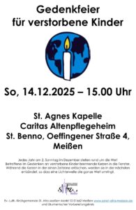Aus der Gemeinde Meißen verstarb am 01.12.2025 Frau Johanna Jany im Alter von 94 Jahren.